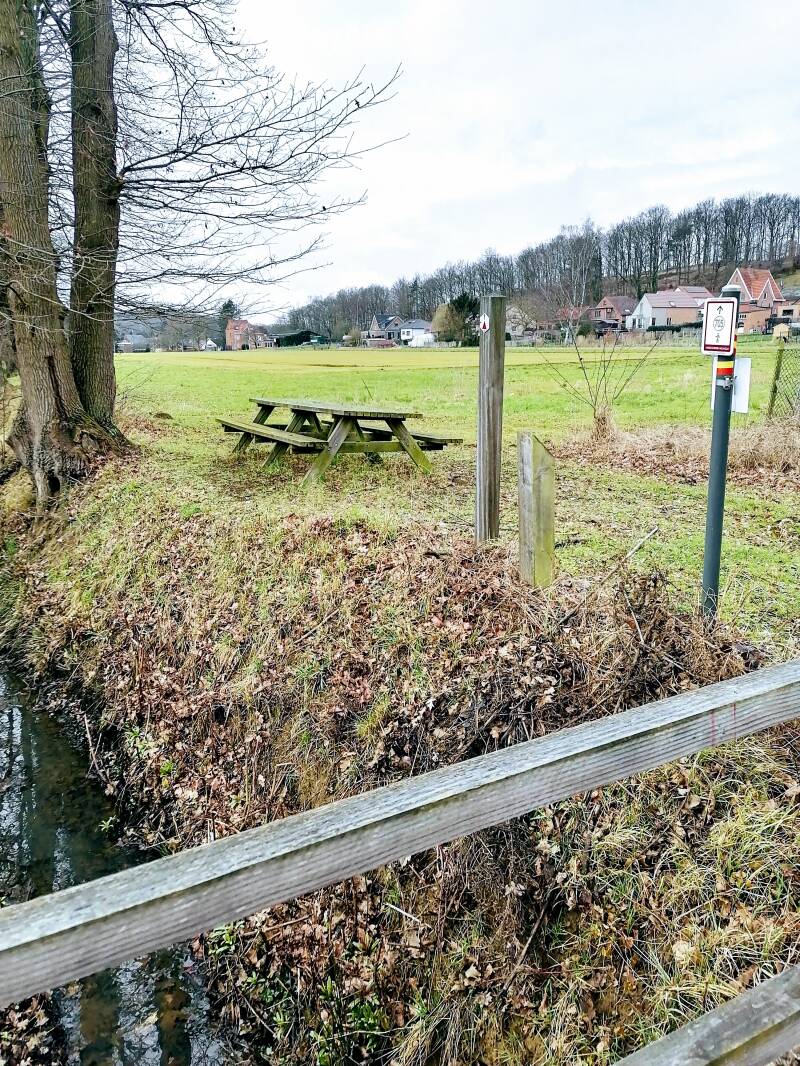 Het weer is niet uitbundig, maar toch is het lekker weer om je hoofd leeg te laten waaien. Ik passeer een Lourdesgrot en wandel hele stukken door het bos. Bovenop de flanken is het uitzicht prachtig.