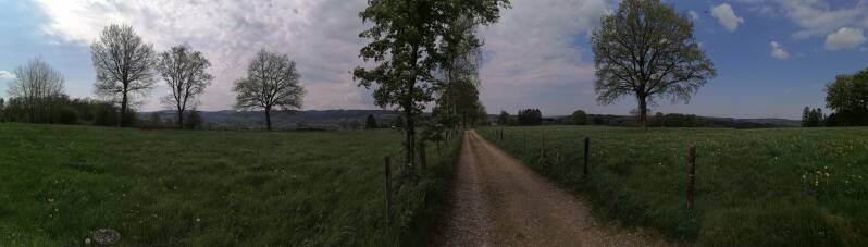 De weg gaat door bos, door weilanden, een groepje boerderijen......en het is adembemend.
