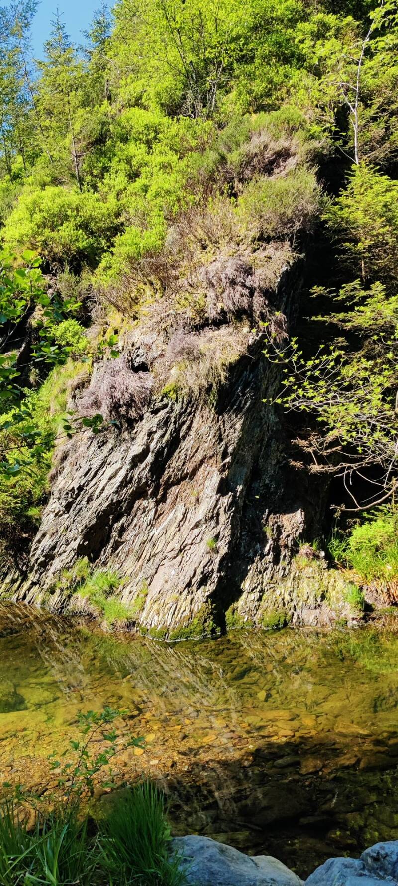 Hoewel het een idyllisch plekje is, stelt het stroompje water dat van de rots komt niet heel veel voor. Toch is het heerlijk om hier op de stenen te zitten aan het water.