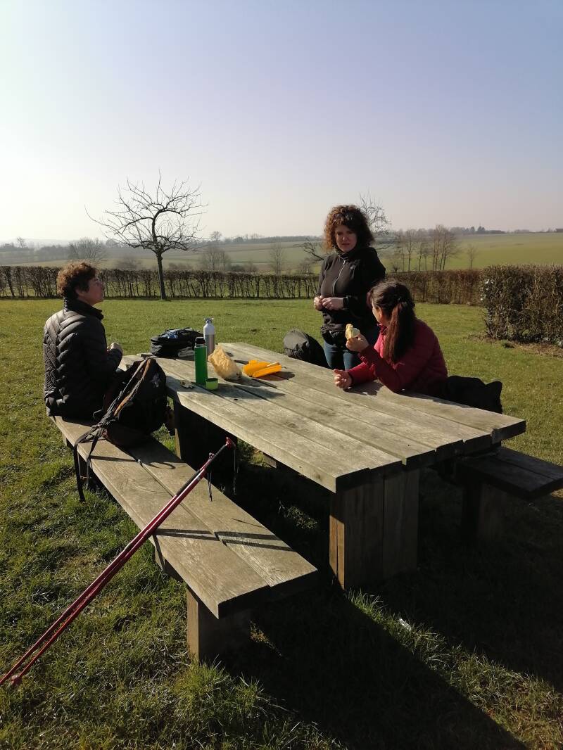 Zaterdag 5 maart, mijn verjaardag, een prima reden om deel 2 van de Camino de Santiago Hugardis te wandelen. 15 kilometer in een heerlijke lentezon, hoewel de dag heel koud is begonnen. Drie vriendinnen wandelen mee en dat maakte het extra gezellig.